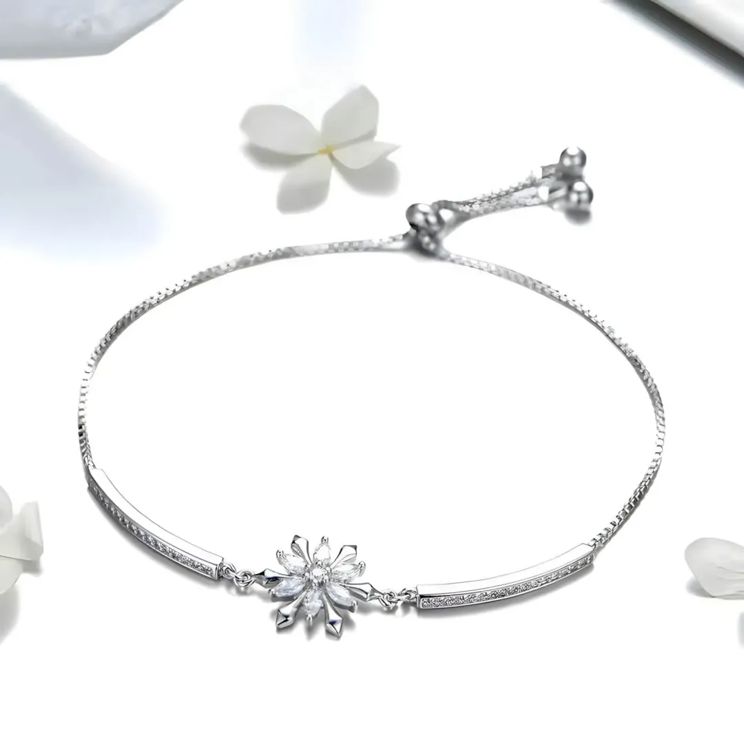 Luxusní jemný náramek Ice Princess s nádhernou sněhovou vločkou v jeho středu je ideálním šperkem pro všechny milovnice elegance a jemných detailů. Sněhová vločka je osazena zářivými čirými krystaly Cubic Zirconia švýcarské kvality AAA+, které odrážejí světlo a dodávají náramku luxusní vzhled. Díky nastavitelnému zapínání se dokonale přizpůsobí jakékoliv velikosti zápěstí a proto je možné náramek jednoduše přizpůsobit velikosti zápěstí. Náramek je vyroben ze šperkařského kovu potaženého drahým platinovým kovem - rhodiem. S tímto náramkem Ice Princess budete zářit jako ledová královna a zároveň vyjádříte svou jedinečnost.