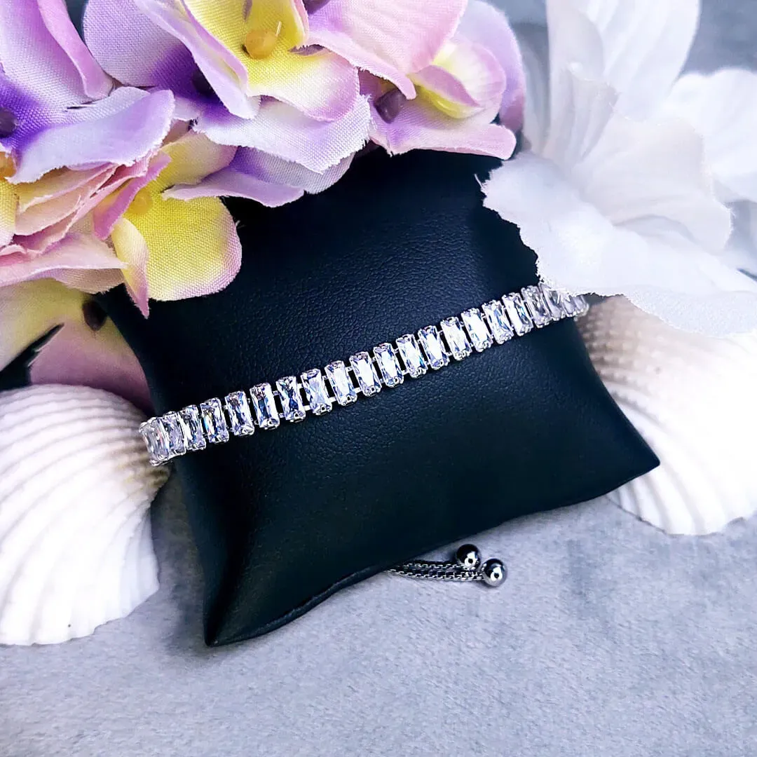 Tento nádherně třpytivý náramek Alexis, bohatě zdobený čirými krystaly s diamantovým brusem, je dokonalým doplňkem pro každou něžnou ručku. Díky důmyslnému mechanismu lze náramek snadno přizpůsobit velikosti zápěstí, což zajišťuje maximální pohodlí a bezpečnost při nošení. Náramek je vykládán precizně broušenými krystaly Swarovski®, které jsou známé svou výjimečnou kvalitou a brilancí. Povrchová úprava rhodiem dodává náramku nejen lesk a luxusní vzhled, ale také zvyšuje jeho odolnost proti poškrábání a ztrátě lesku. Tento elegantní šperk je ideální volbou pro slavnostní příležitosti i každodenní nošení, kdy chcete zazářit a cítit se výjimečně.