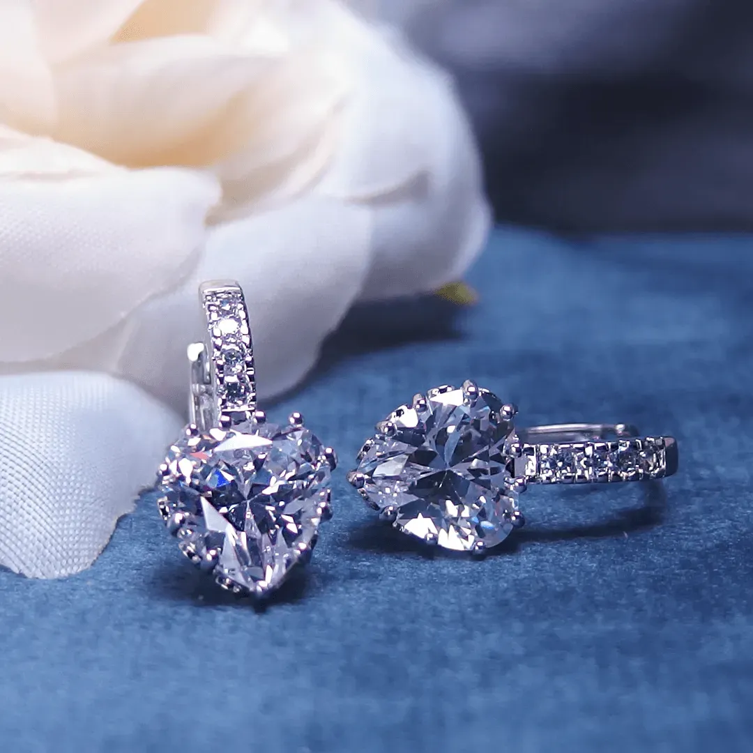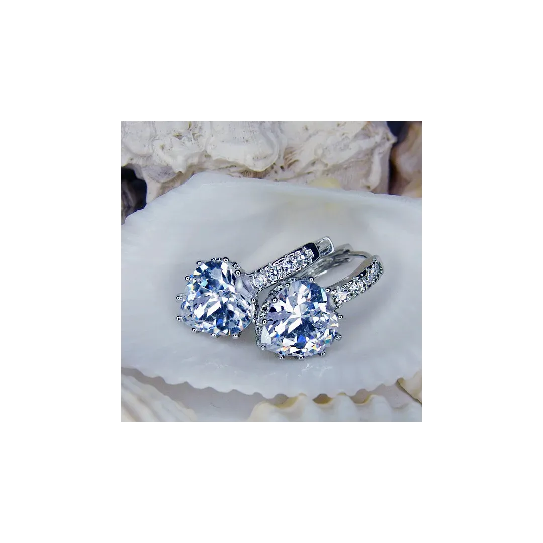 Nádherné romantické náušnice bohatě vykládané třpytivými krystalky s velkým srdcovým krystalem diamantového brusu pro dámu vašeho srdce. Náušnice jsou zdobeny krystaly Swarovski, které se vyznačují svým jedinečným diamantovým brusem. Povrch je galvanicky pokoven drahým kovem - rhodiem což náušnicím dodává nádech luxusu po velmi dlouhou dobu.