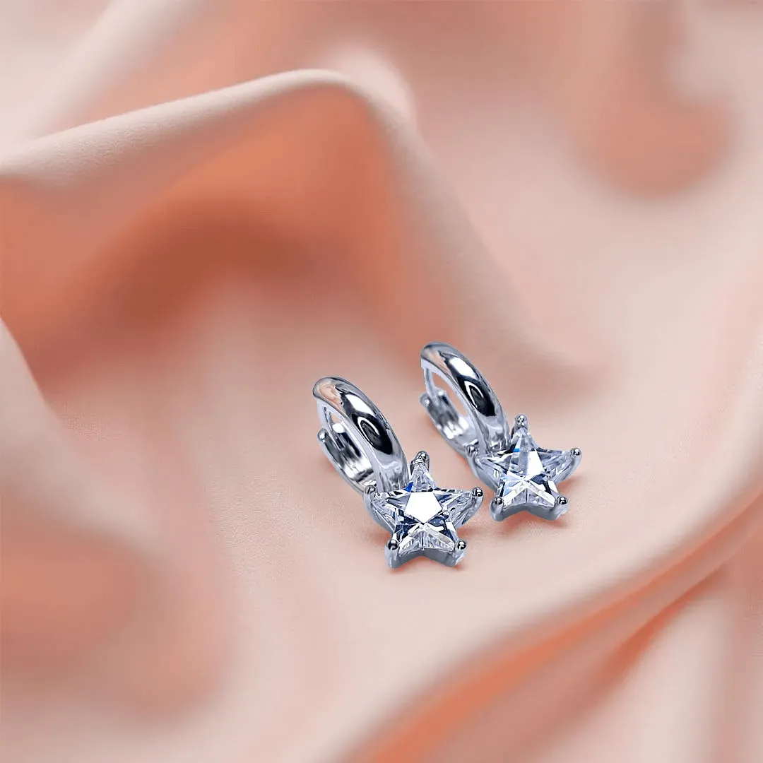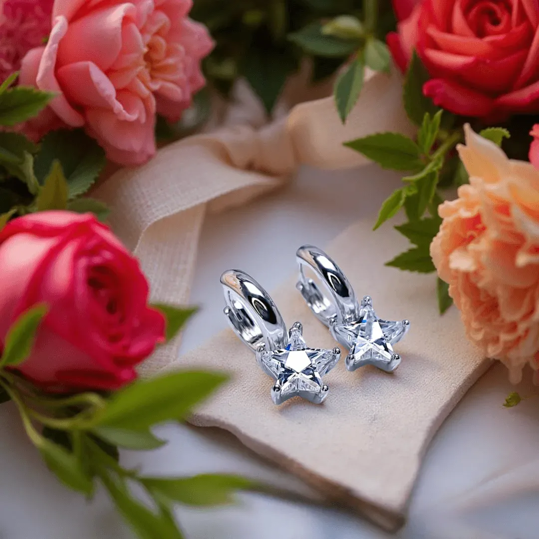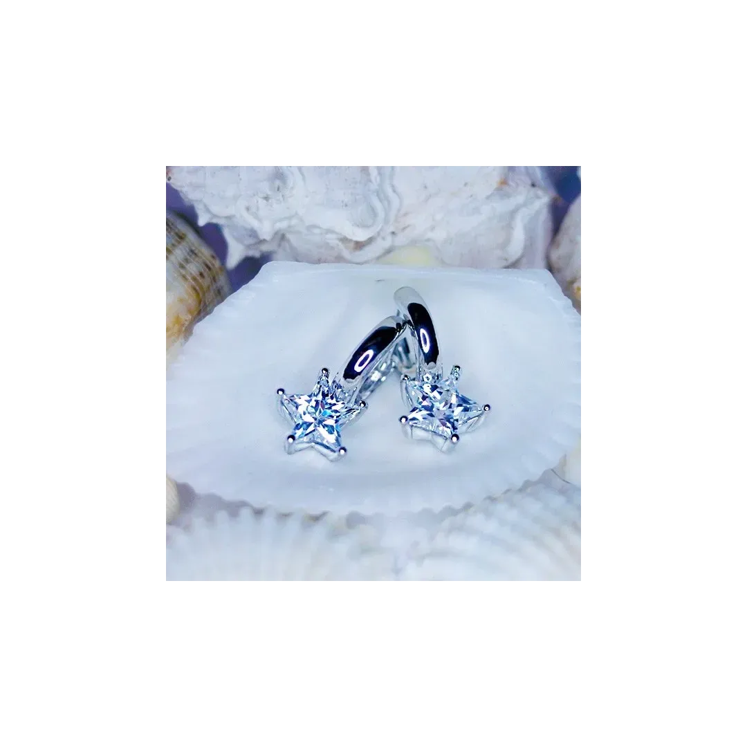 Nádherné náušnice s velkým třpytivým krystalem ve tvaru hvězdy rozzáří vzhled každé dámy či slečny. Náušnice jsou zdobené precizně broušeným krystalem Cubic Zirconia nejvyšší kvality AAA+ a na povrchu galvanicky pokoveny drahým platinovým kovem - rhodiem.