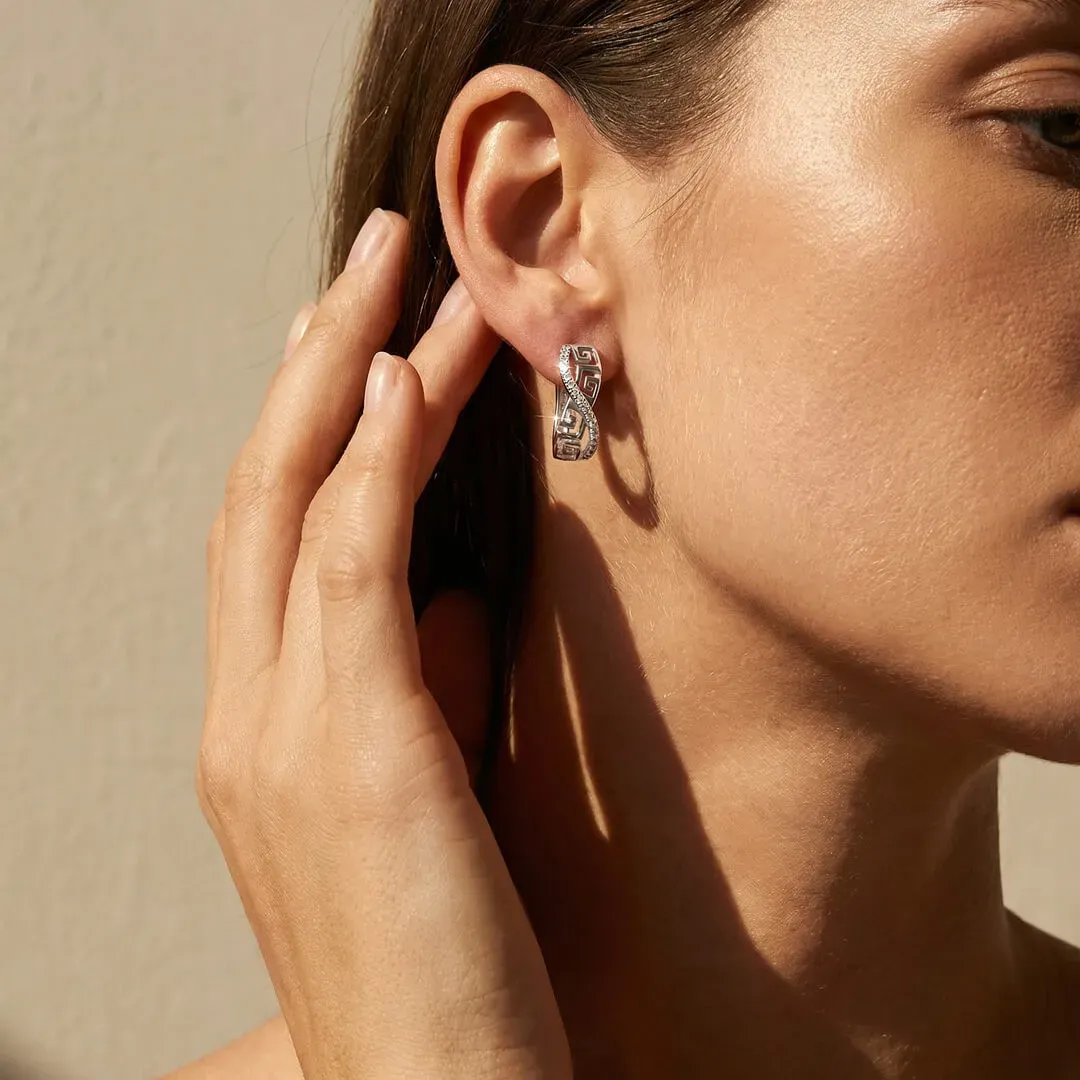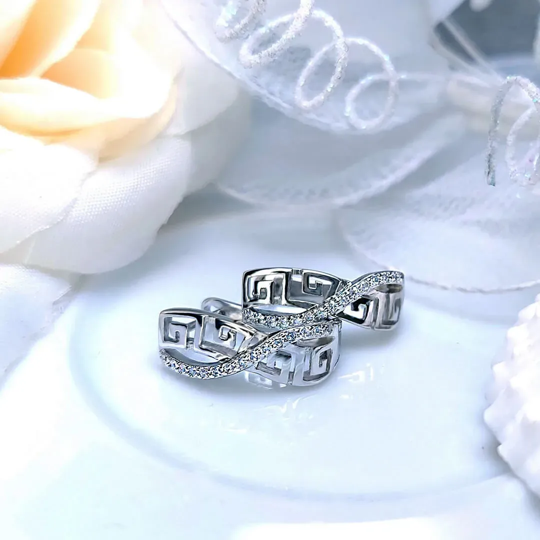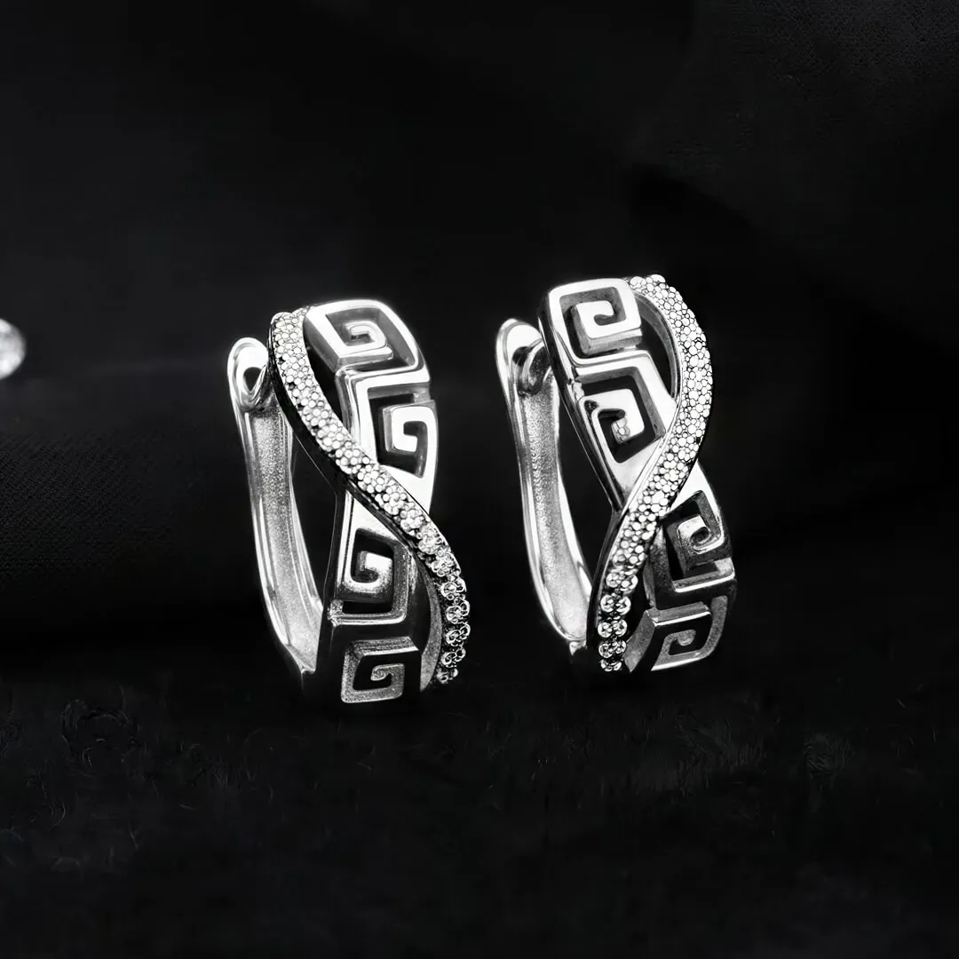 Velmi atraktivní náušnice Brillance Artemis s nádechem exotiky bohatě vykládané drobnými třpytivými krystalky zdobené velmi efektním gravírováním. Náušnice jsou zdobené precizně broušenými krystaly Cubic Zirconia nejvyšší kvality AAA+ a na povrchu galvanicky pokoveny drahým platinovým kovem - rhodiem, které dodává náušnicím krásný lesk a barvu bílého zlata.