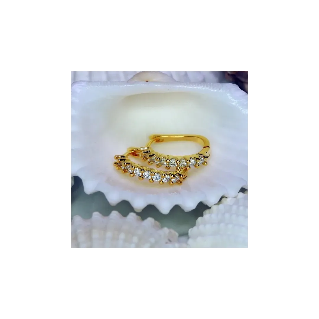 Elegantní jemné náušničky vykládané zářivými čirými krystaly rozzáří vzhled každé ženy či dívky. Náušnice jsou vykládány třpytivými krystaly Cubic Zirconia švýcarské kvality AAA+ a vyrobeny ze šperkařského kovu potaženého drahým kovem - 18K zlatem, které si udrží po dlouhou dobu svůj luxusní vzhled a lesk.