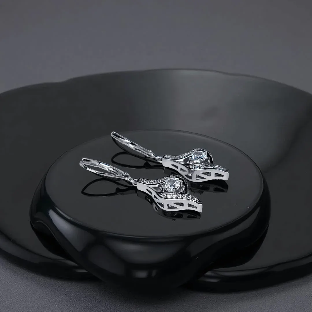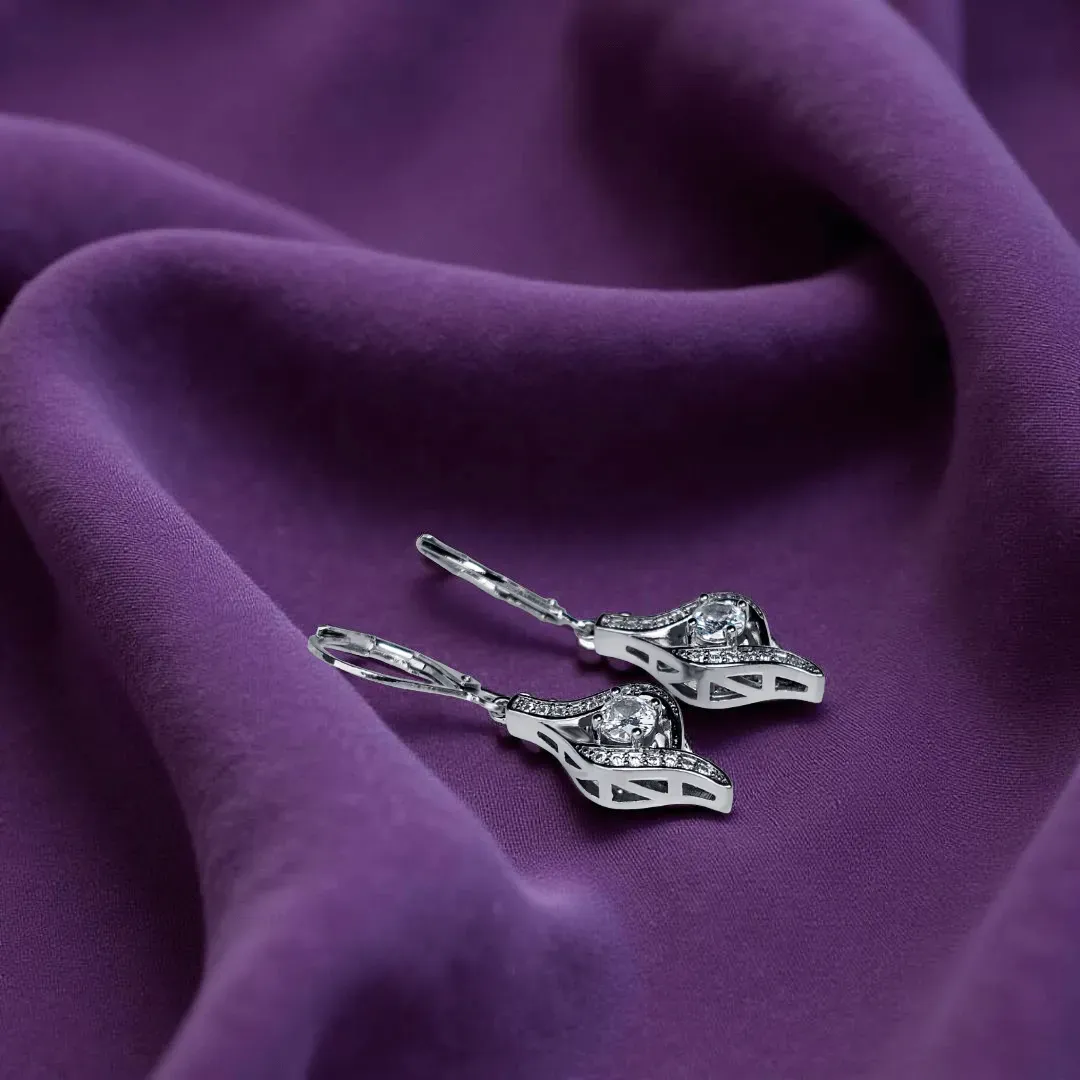 Objevte lesk a eleganci s visacími náušnicemi Brillance Gloria. Atraktivní výrazné náušnice s dominantním čirým krystalem a bohatě vykládané precizně broušenými drobnějšími čirými krystalky dokonale zvýrazní váš půvab. Náušnice jsou vykládány precizně broušenými kubickými zirkony švýcarské kvality AAA+, na povrchu jsou potaženy drahým platinovým kovem - rhodiem.