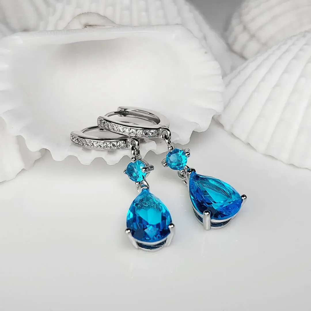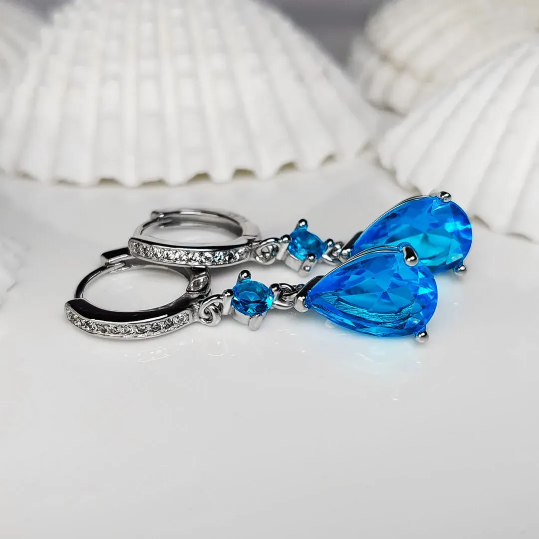 Náušnice Brillance Princess Sea Blue se zirkony