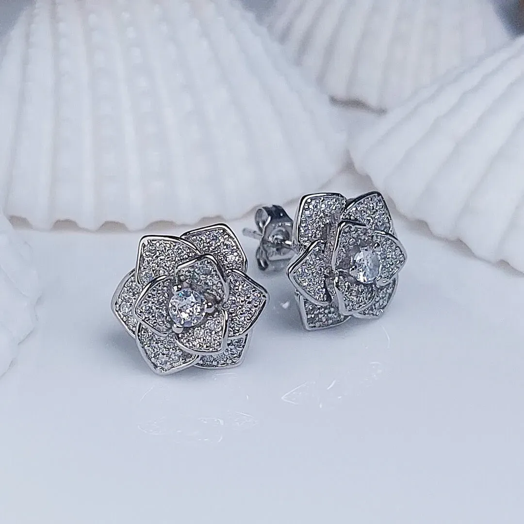 Tyto úchvatně třpytivé náušnice La Diamantina Rosalia s nádechem romantiky dokonale zvýrazní půvab každé dámy. Náušnice jsou bohatě zdobeny kubickými zirkony nejvyší kvality AAA+, které na světle září jako kapky rosy na růžových okvětních lístcích. Na povrchu jsou potaženy platinovým kovem - rhodiem, což jim dodává jedinečný lesk a svůdnou barvu bílého zlata.