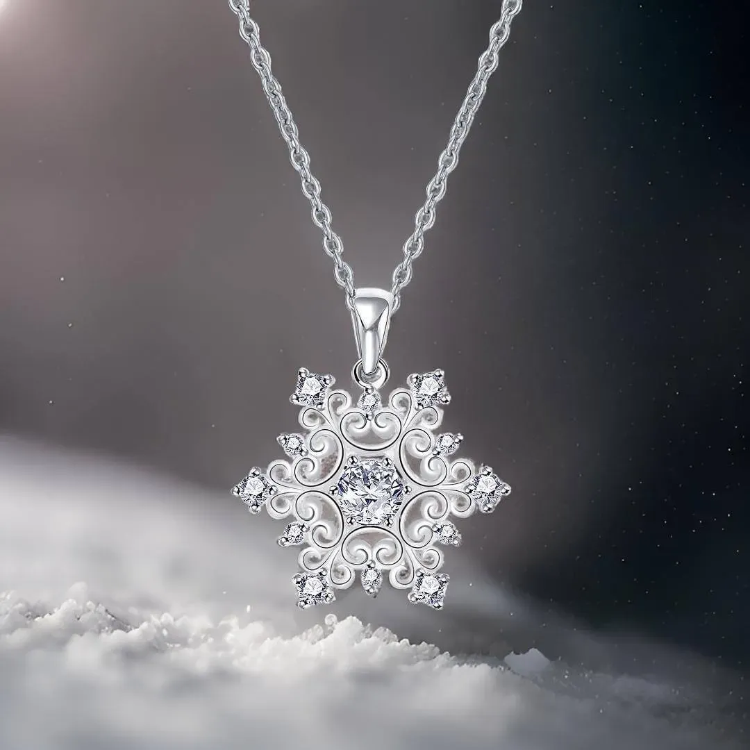 Krásný šperk s nádechem zimní romantiky vykládaný třpytivými krystaly Cubic Zirconia nejvyšší kvality AAA+ nádherně ozdobí dekolt každé ženy a navodí příjemně nostalgickou náladu. Tento náhrdelník je ideálním doplňkem pro zimní večírky a slavnostní příležitosti, kde jeho třpytivé krystaly odrážejí světlo jako ledové vločky. Precizní broušení krystalů zajišťuje jejich neodolatelný lesk a brilanci, zatímco jemný design přináší eleganci a sofistikovanost. Tento šperk je nejen krásným módním doplňkem, ale také symbolem romantiky a elegance, který zaručeně upoutá pozornost a potěší každou ženu.