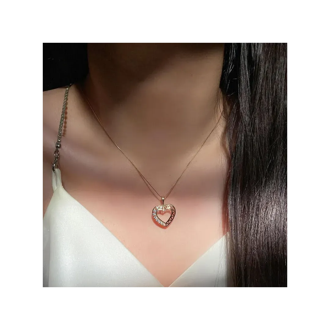 Ozdobte svůj dekolt šperkem, který symbolizuje lásku, něžnost a harmonii. Náhrdelník srdce Crystal Heart se zirkony přináší nádherný kontrast mezi jemnými zirkony a elegantním kovovým rámem s detailně vypracovaným vzorem. Zirkony umístěné na jedné straně srdce se rozzáří při každém záblesku světla a vytvoří okouzlující třpyt. Geometrické linie na druhé části přívěsku dodávají moderní nádech, který dokonale ladí s romantickým motivem. Šperk je lehký, pohodlný na nošení a díky preciznímu zpracování zůstává krásný dlouhou dobu. Tento přívěsek je nejen dokonalým dárkem z lásky, ale i stylovým doplňkem, který se stane neodmyslitelnou součástí vaší šperkovnice.