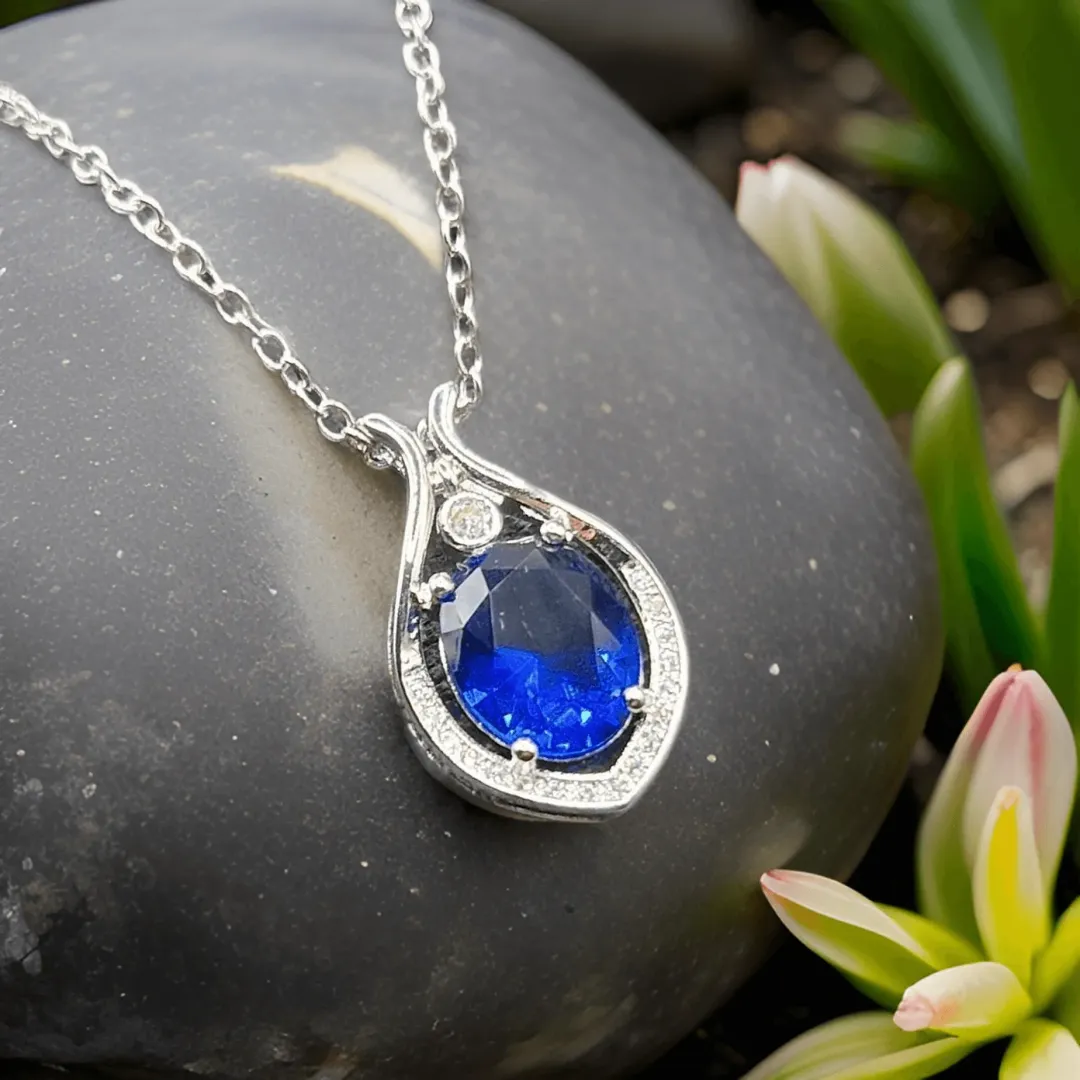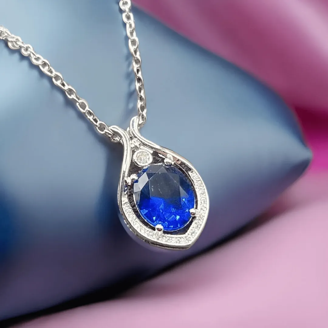 Exotický náhrdelník Nemesis je atraktivní šperk s nádechem tajemné exotiky je perfektním dárkem pro ženu, která ocení originalitu a dobrý vkus. Dominantu tohoto elegantního šperku tvoří velký precizně broušený krystal - kubický zirkon v nádherné jezerní modré barvě, po obvodu je bohatě vykládaný čirými krystalky Cubic Zirconia briliantového brusu.