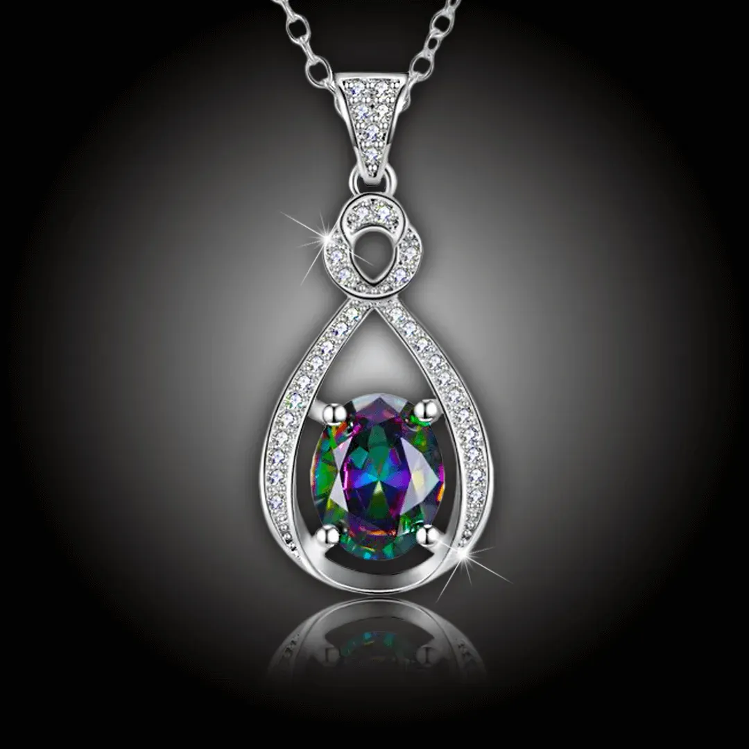 Luxusní originální šperk Magický náhrdelník Mystica s nádechem tajemna zaručeně rozzáří oči i těch nejnáročnějších dam. Tento amulet je zdobený velkým, precizně broušeným krystalem Swarovski v barvě mystic topaz, ve kterém se nádherně odrážejí všechny barvy duhy. Po stranách je bohatě vykládaný třpytivými krystalky čiré barvy, které dodávají náhrdelníku ještě větší lesk a eleganci. Povrch náhrdelníku je galvanicky pokoven platinovým kovem - rhodiem, což zajišťuje jeho dlouhotrvající krásu a odolnost. Tento magický náhrdelník Mystica je ideálním doplňkem pro každou příležitost, ať už jde o slavnostní událost nebo každodenní nošení. Přidejte do své šperkovnice tento jedinečný kousek a nechte svou krásu zazářit.