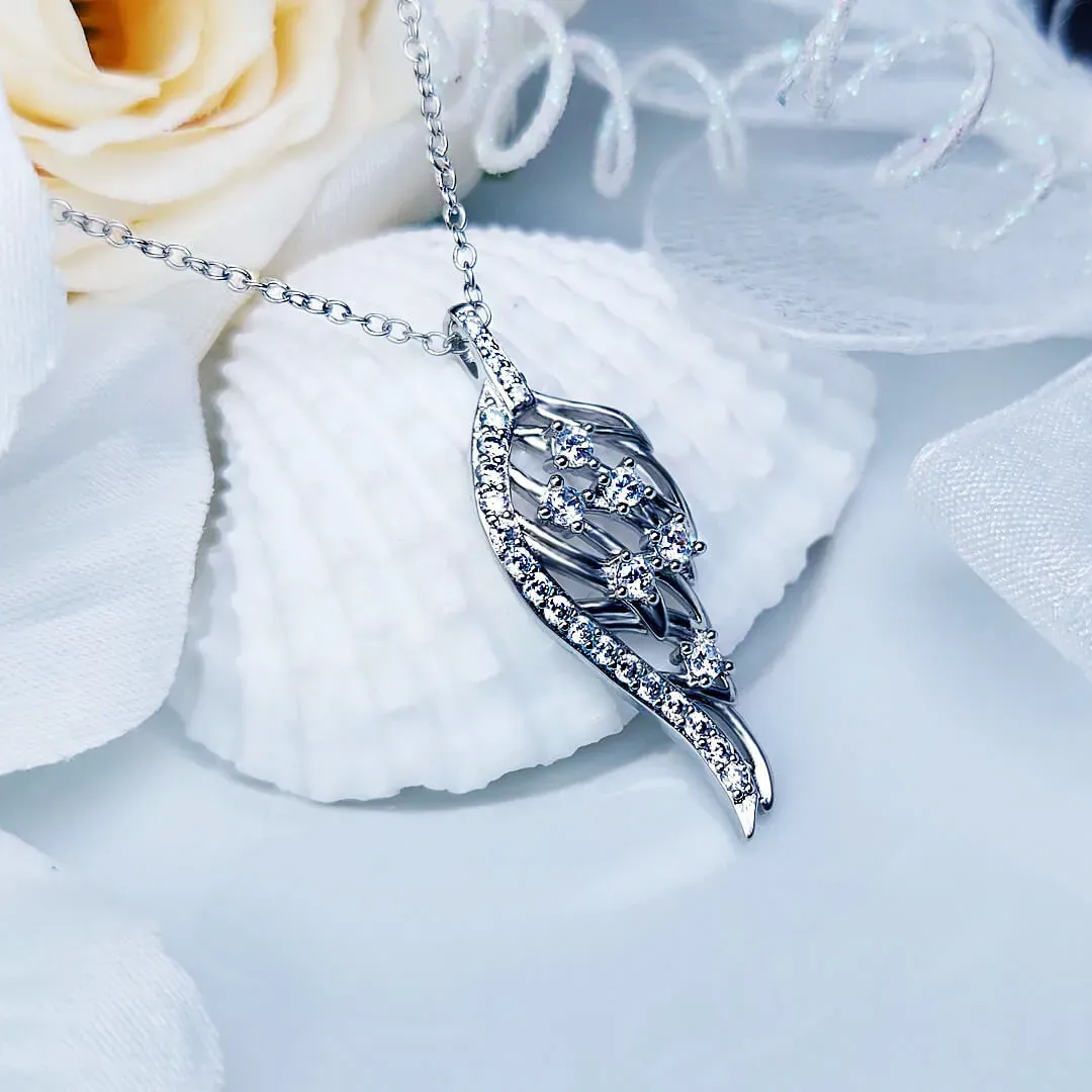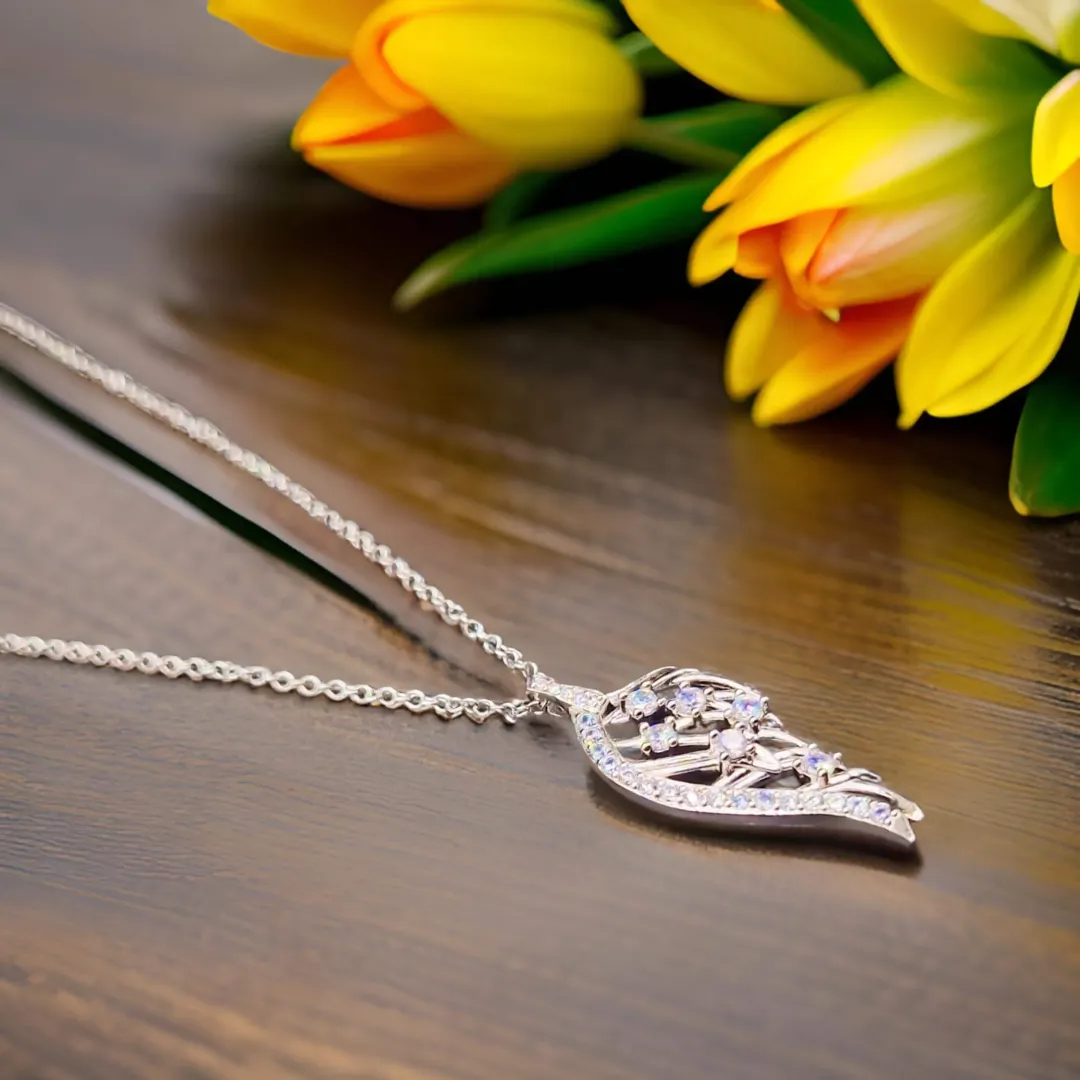 Nádherný šperk ve tvaru andělského křídla, který zaručeně rozzáří oči každého andílka. Přívěsek je bohatě vykládáný precizně broušenými třpytivými krystalky čiré barvy - Cubic Zirconia. Vyroben je ze šperkařské slitiny bez obsahu alergenních látek a povrch je galvanicky pokoven drahým kovem – rhodiem, které je antialergenní a dlouho si zachová svůj lesk a barvu bílého zlata.