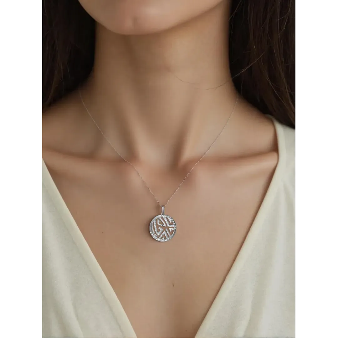 Originální šperk v módním designu, který zaručeně rozzáří oči i náročnější dámy. Amulet je bohatě vykládaný třpytivými krystalky čiré barvy - Cubic Zirconia AAA+. Náhrdelník je potažen drahým platinovým kovem - rhodiem, vyroben je z kvalitní šperkařské slitiny bez obsahu alergenních látek.