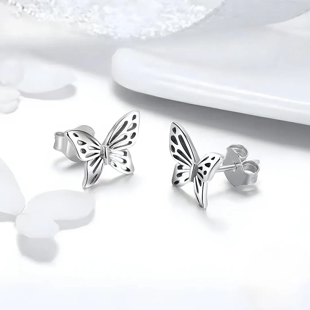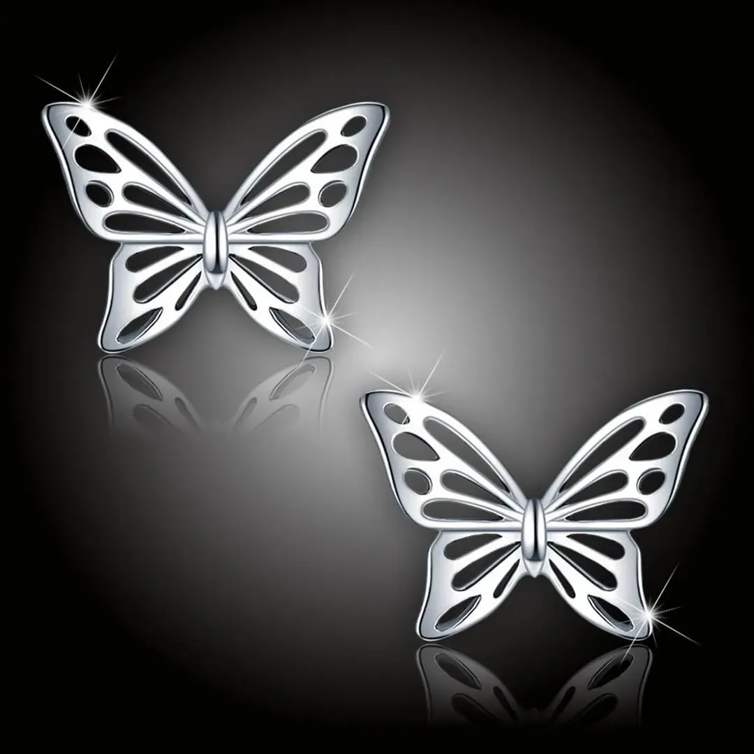 Nádherné stříbrné náušnice Motýlek ve tvaru exotických motýlků, které jsou na křídlech zdobené velmi efektním gravírováním, dokonale pozdvihnou váš půvab. Nádech luxusu navíc umocńuje rhodiová úprava. Zapínání na puzetku. Náušnice jsou označeny puncem ryzosti S925 a na povrchu jsou galvanicky pokoveny rhodiem pro jejich lesk a barvu bílého zlata.
