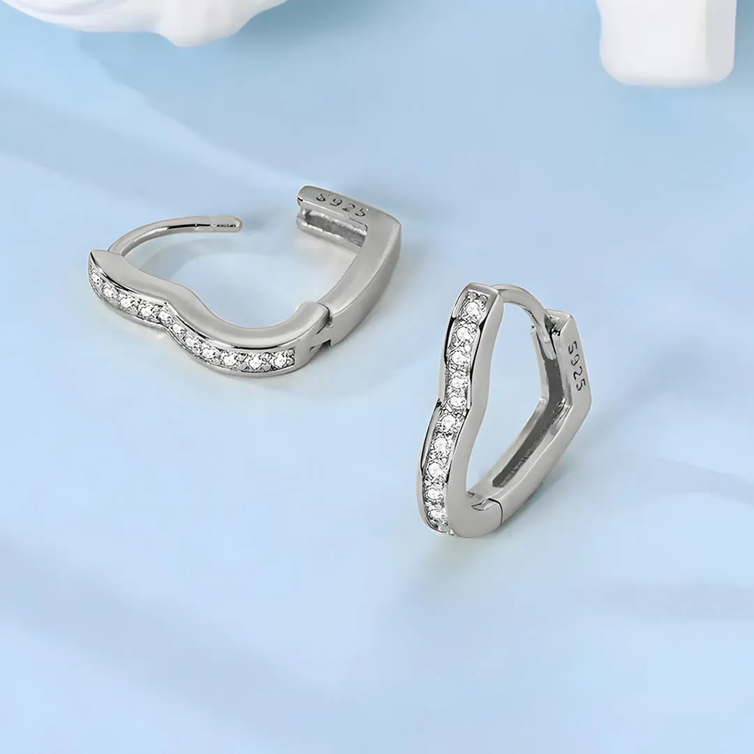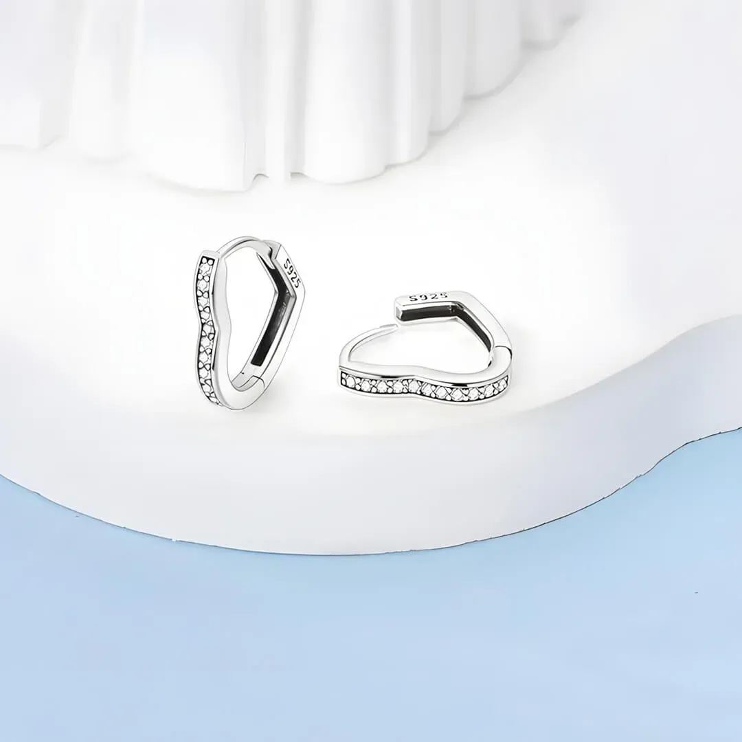 Stříbrné náušnice Třpytivé srdce s čirými zirkony jsou symbolem něžné elegance a romantického půvabu. Jemně zvlněný tvar náušnic připomíná obrys srdce, který se krásně přizpůsobí linii ucha. Celou přední stranu zdobí řada drobných čirých zirkonů, které se při každém pohybu nádherně rozzáří a zvýrazní vaši přirozenou krásu. Díky kvalitnímu stříbru s ryzostí 925/1000 a preciznímu zpracování jsou náušnice nejen krásné, ale i odolné pro každodenní nošení. Jejich univerzální design se hodí jak k elegantnímu večernímu outfitu, tak i ke casual stylu. Tyto náušnice jsou ideální volbou pro ženy, které chtějí podtrhnout svou ženskost a půvab jemným třpytem. Pro dokonalý romantický set doporučujeme zkombinovat s náhrdelníkem Stříbrné srdíčko Diamond Heart s čirým zirkonem.